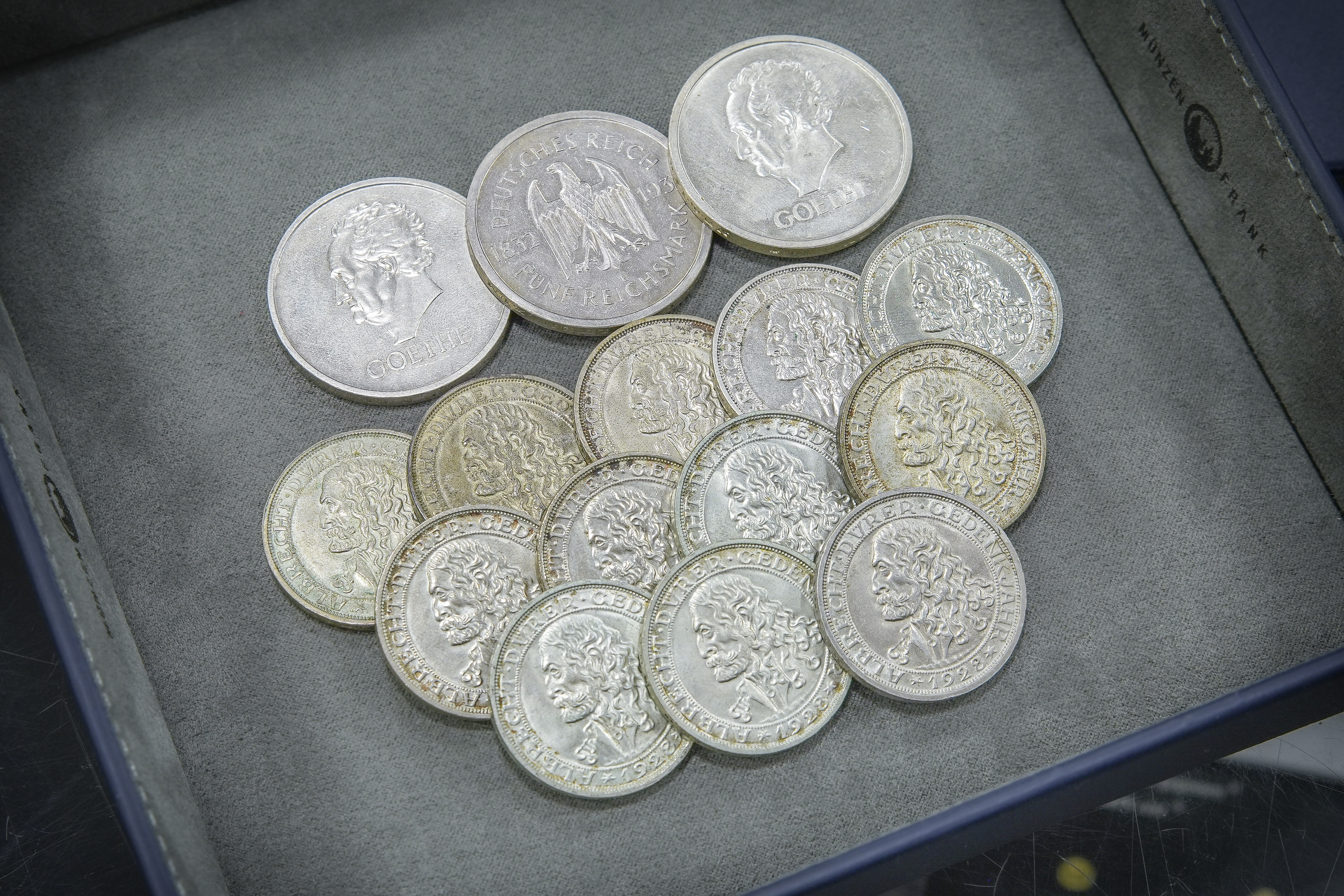 Münzen und Medaillen aus der Weimarer Republik, dem dritten Reich und der BRD.